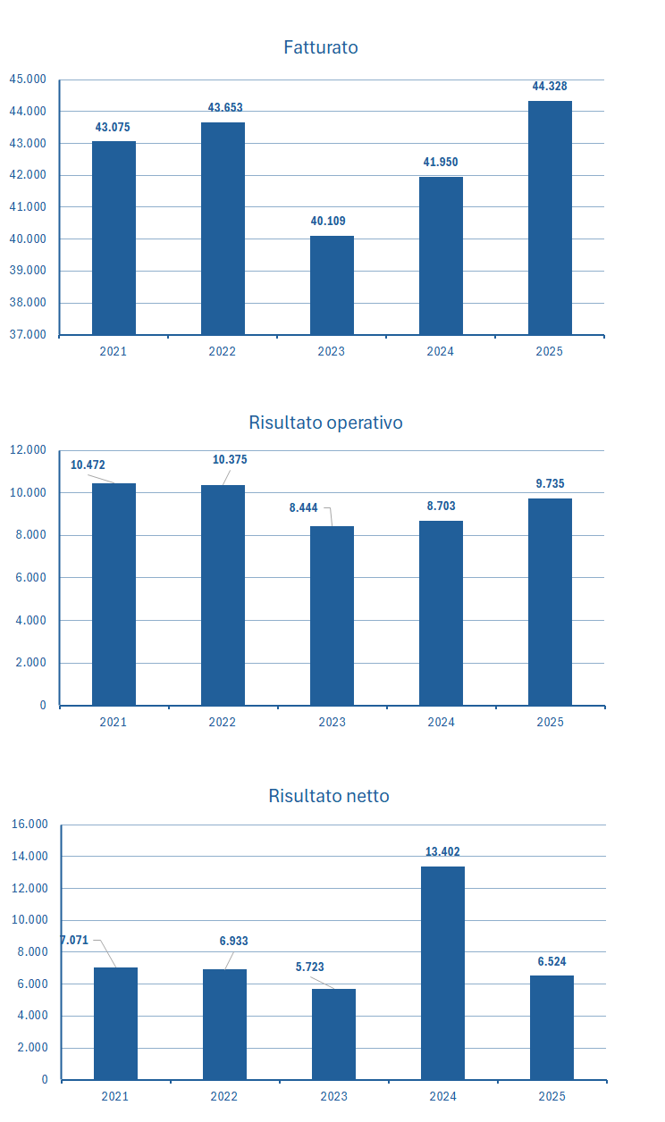 | Fatturato | 43.075 | 43.653 | 40.109 | 41.950 | 44.328 |