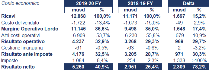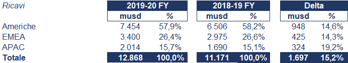 L’andamento dei ricavi è riportato nella tabella sottostante: