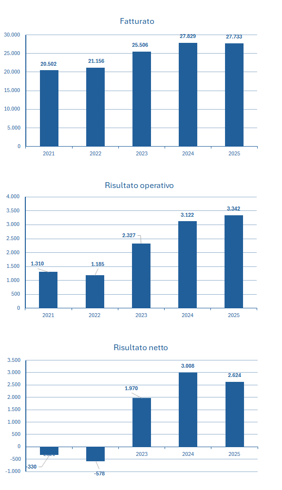 | Fatturato | 20.502 | 21.156 | 25.506 | 27.829 | 27.733 |