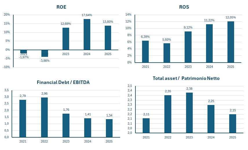 | Financial Debt / EBITDA | 2,79 | 2,96 | 1,76 | 1,41 | 1,34 |