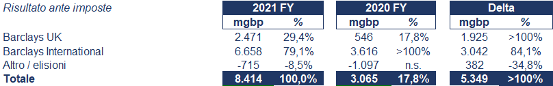 Più in dettaglio, la composizione del risultato ante imposte è esposta nella tabella sottostante: