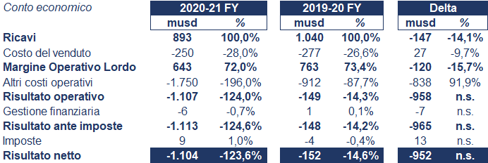 L’andamento dei ricavi è riportato nella tabella seguente: