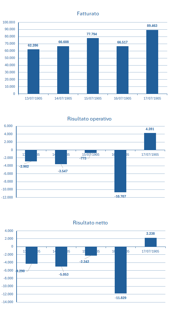 | Risultato operativo | -2.902 | -3.547 | -773 | -10.707 | 4.281 |