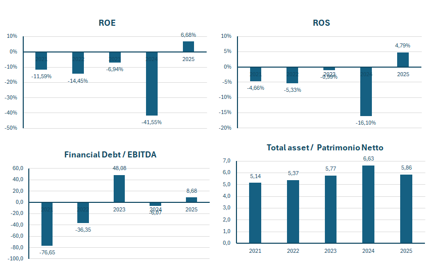 | ROS (Return on Sales) | -4,66% | -5,33% | -0,99% | -16,10% | 4,79% |