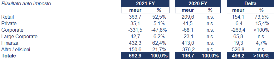 Più in dettaglio, la composizione del risultato ante imposte è esposta nella tabella sottostante:
