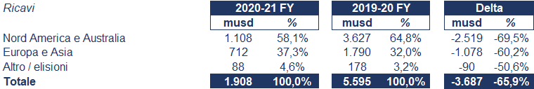 L’andamento dei ricavi è esposto nella tabella sottostante: