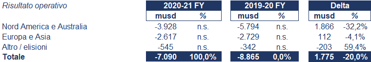 Più in dettaglio la composizione del risultato operativo è indicata nella tabella sottostante: