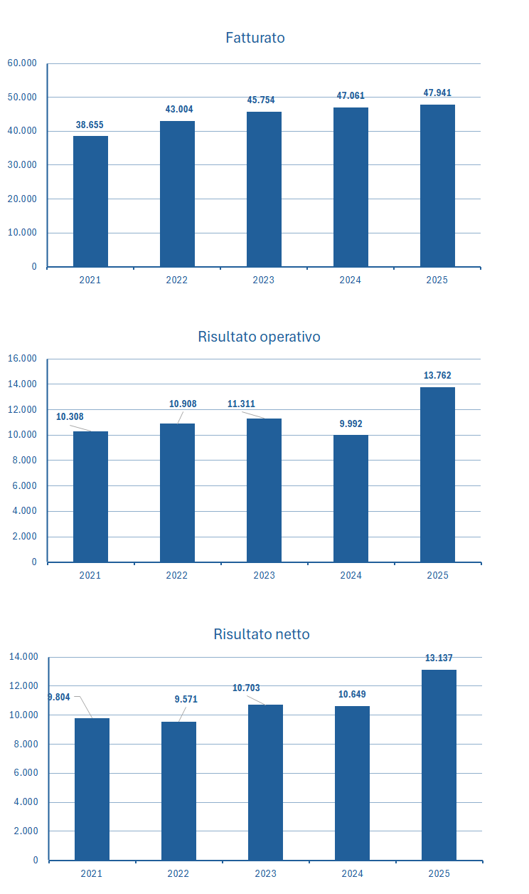 | Fatturato | 38.655 | 43.004 | 45.754 | 47.061 | 47.941 |