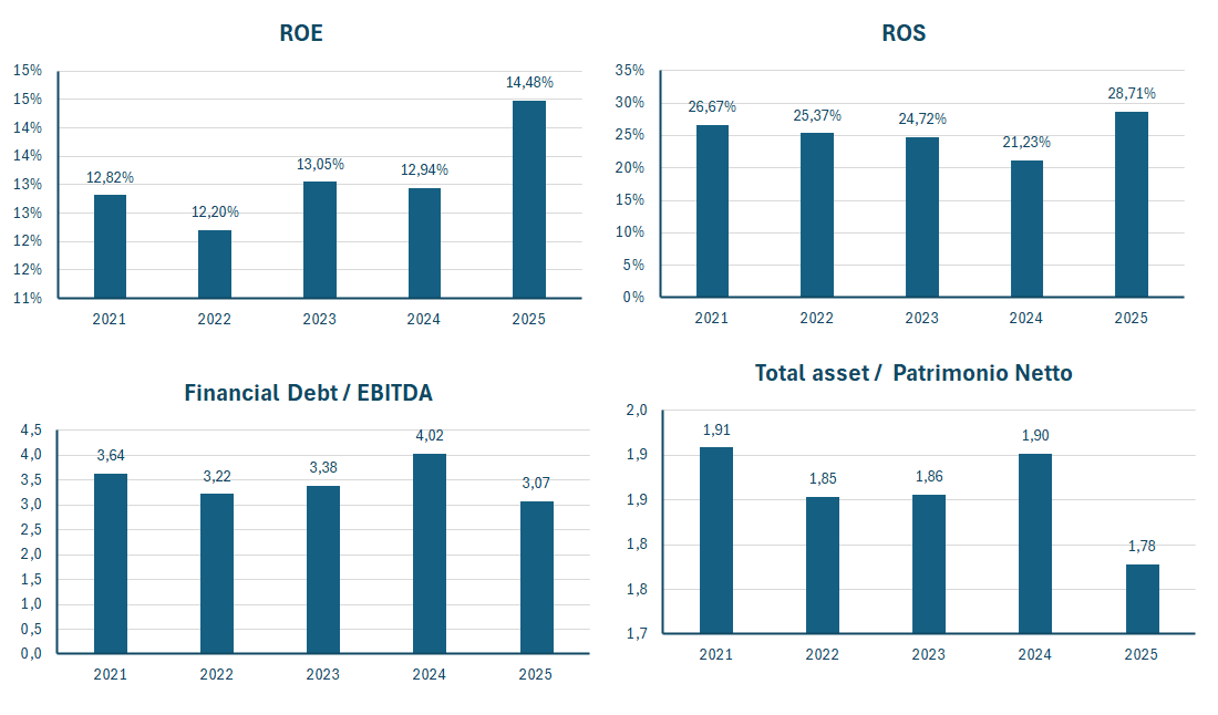| Total asset / Patrimonio Netto | 1,91 | 1,85 | 1,86 | 1,90 | 1,78 |