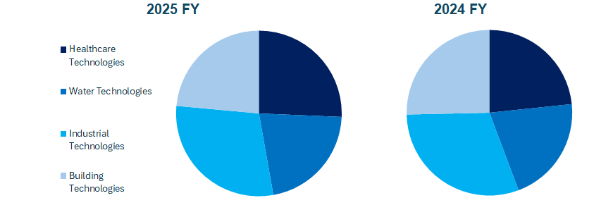 | Healthcare & Water Technologies | 3.233 | 47,2% | 2.976 | 44,3% | 257 | 8,6% | ||