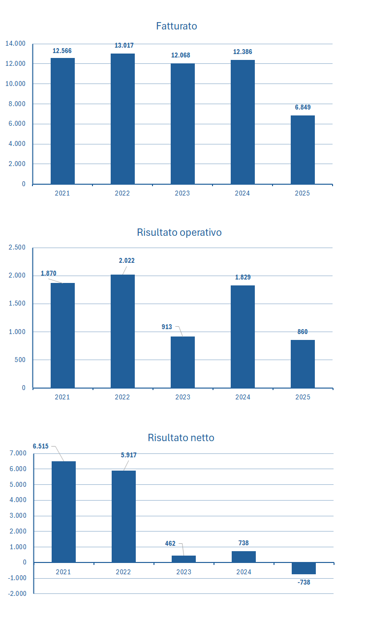 | Fatturato | 12.566 | 13.017 | 12.068 | 12.386 | 6.849 |