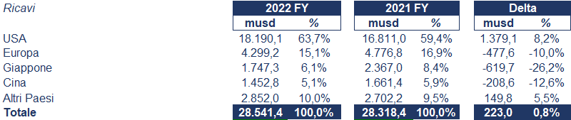 L’andamento dei ricavi è esposto nella tabella seguente: