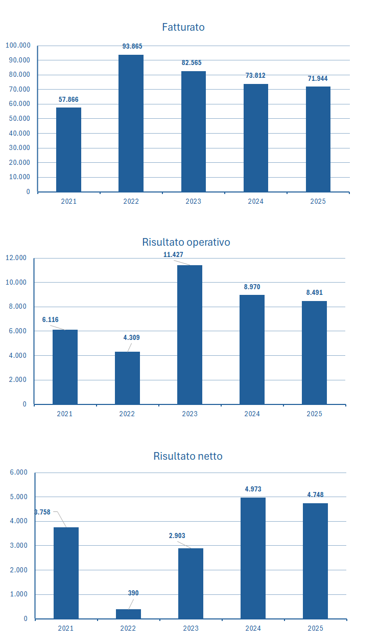 | Fatturato | 57.866 | 93.865 | 82.565 | 73.812 | 71.944 |