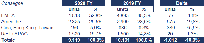 Le consegne alla base dei suddetti ricavi sono rappresentate nel prospetto sottostante: