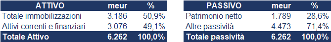 Alla data sopra indicata lo stato patrimoniale era il seguente: