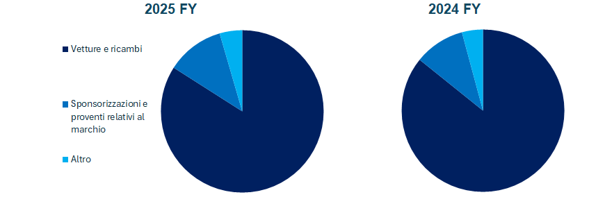 - Altro: si riferisce alle attività del Financial Services, di gestione dell’Autodromo del Mugello e di altre attività sportive.