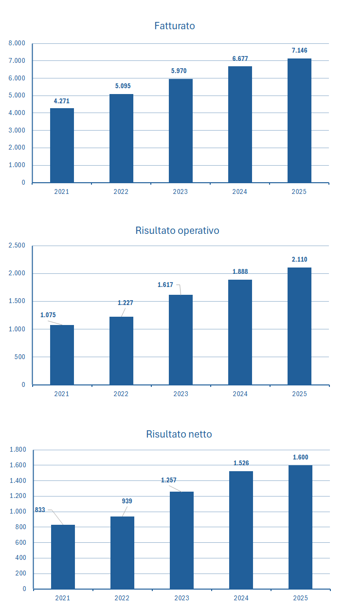 | Fatturato | 4.271 | 5.095 | 5.970 | 6.677 | 7.146 |