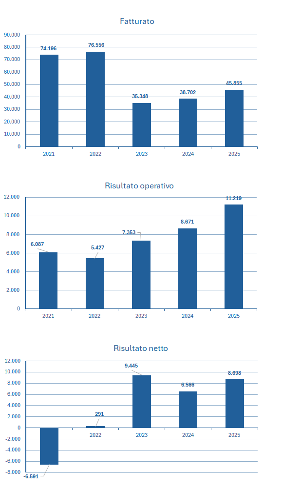 | Fatturato | 74.196 | 76.556 | 35.348 | 38.702 | 45.855 |