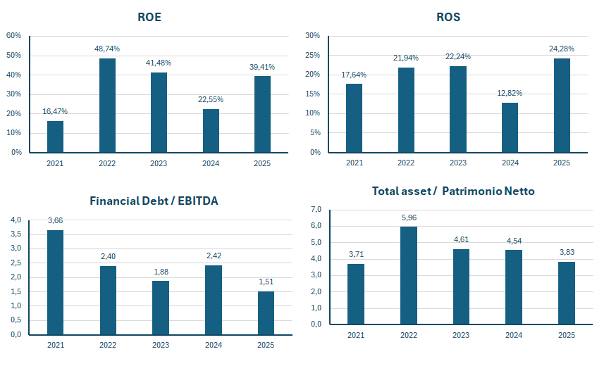 | Total asset / Patrimonio Netto | 3,71 | 5,96 | 4,61 | 4,54 | 3,83 |
