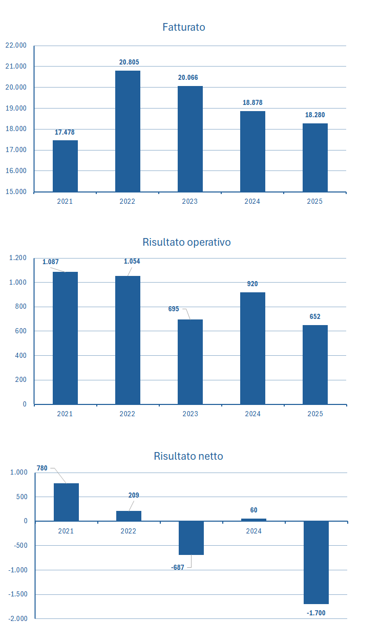 | Fatturato | 17.478 | 20.805 | 20.066 | 18.878 | 18.280 |
