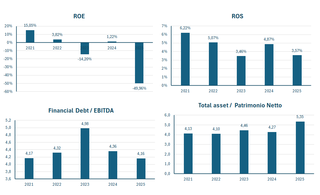 | Total asset / Patrimonio Netto | 4,13 | 4,10 | 4,46 | 4,27 | 5,35 |