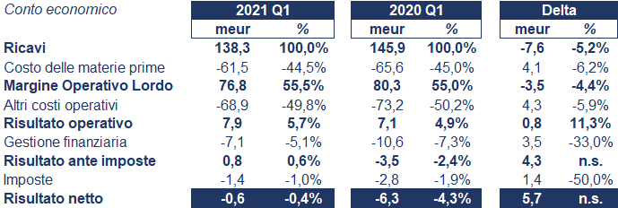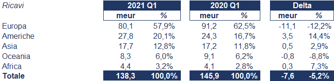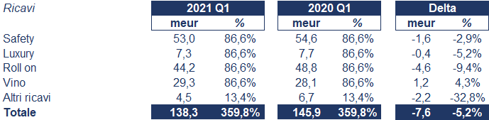 L’andamento dei ricavi è riportato nella tabella seguente: