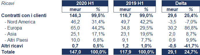 L’andamento dei ricavi è riportato nella tabella seguente: