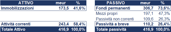 Alla data sopra indicata lo stato patrimoniale era il seguente: