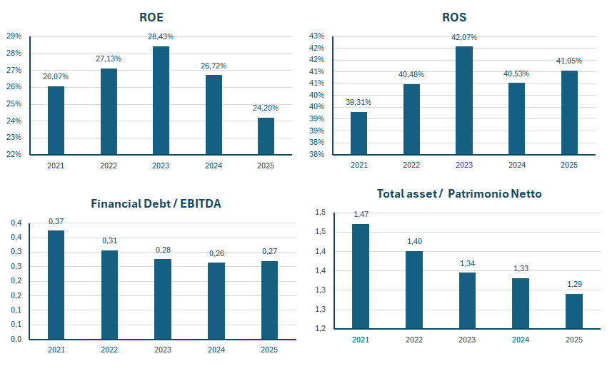 | Total asset / Patrimonio Netto | 1,47 | 1,40 | 1,34 | 1,33 | 1,29 |