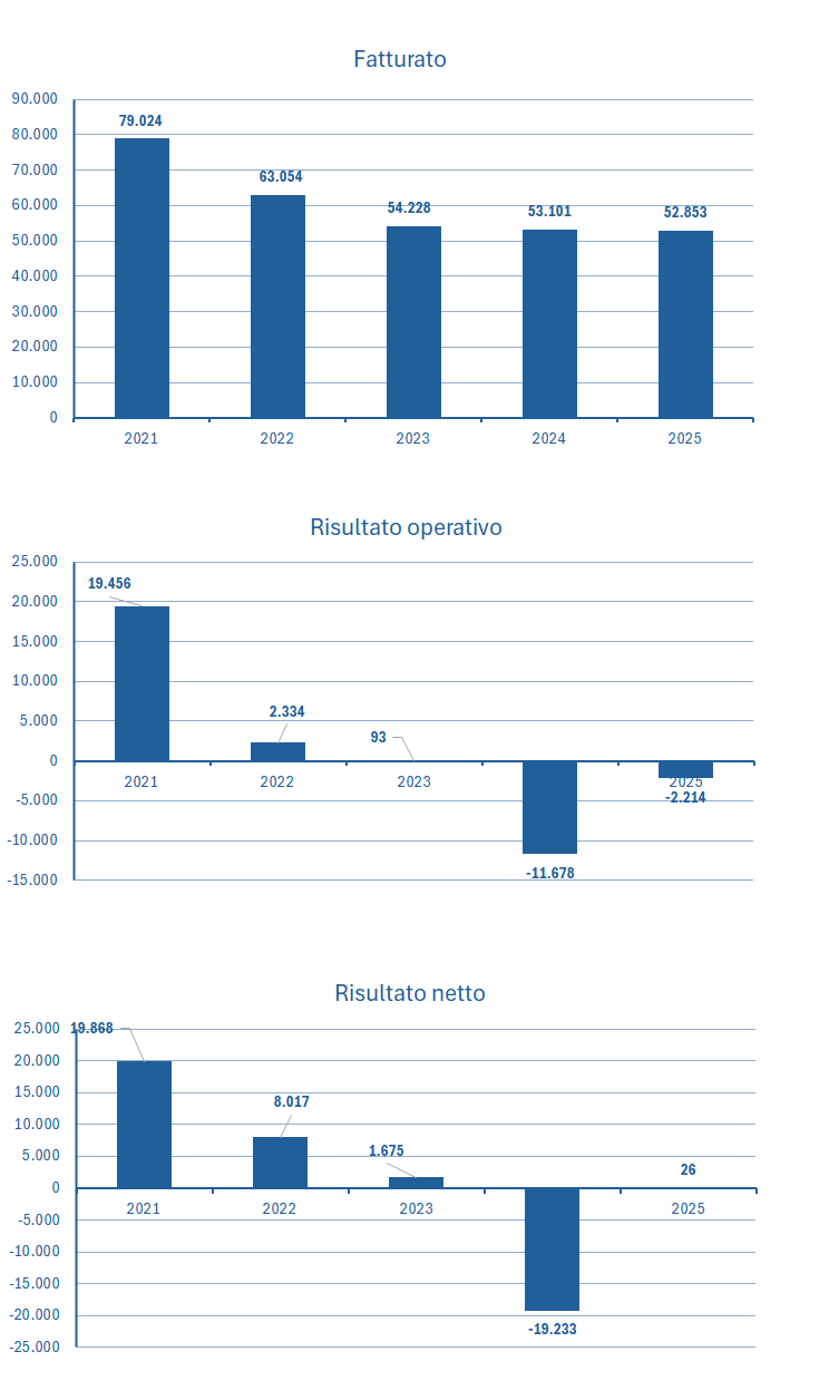 | Fatturato | 79.024 | 63.054 | 54.228 | 53.101 | 52.853 |