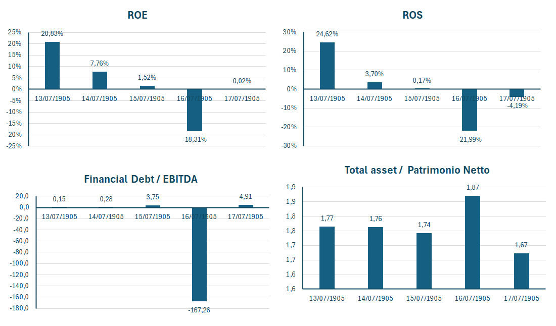 | ROS (Return on Sales) | 24,62% | 3,70% | 0,17% | -21,99% | -4,19% |