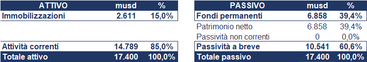 Alla data sopra indicata lo stato patrimoniale era il seguente:
