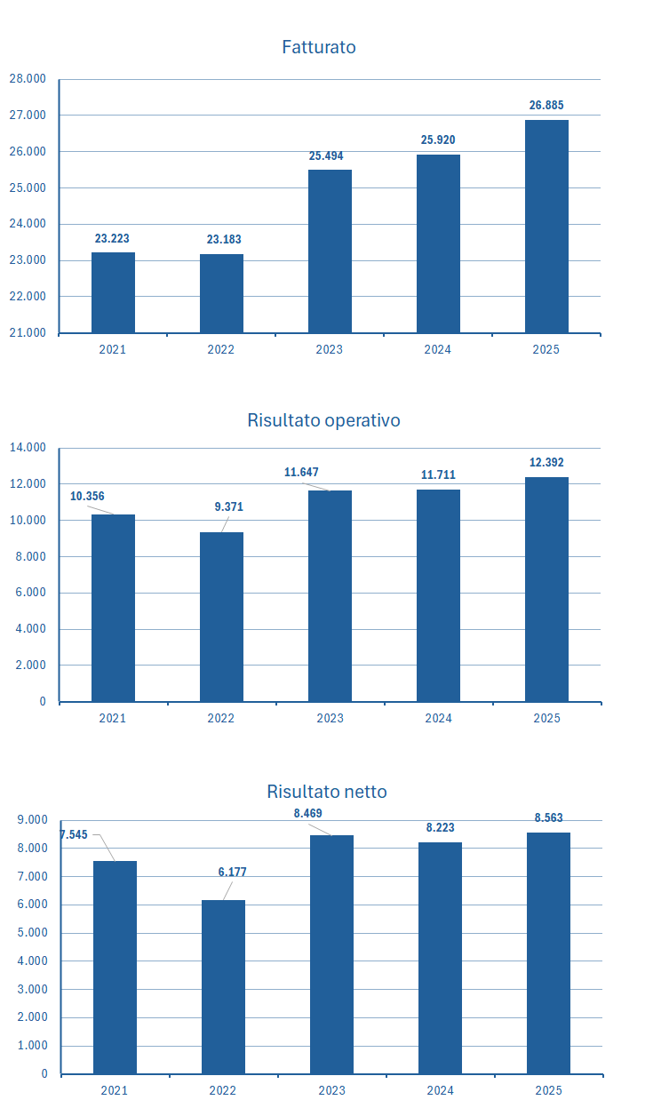| Fatturato | 23.223 | 23.183 | 25.494 | 25.920 | 26.885 |