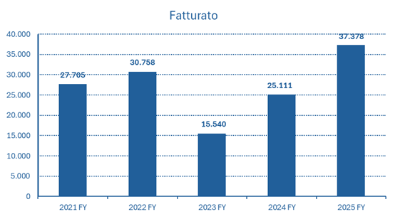 | Fatturato | 37.378 | 25.111 | 15.540 | 30.758 | 27.705 |