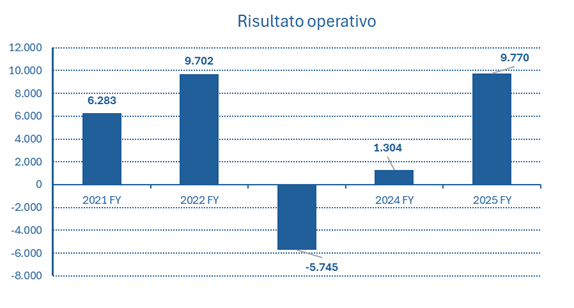 | Risultato operativo | 9.770 | 1.304 | -5.745 | 9.702 | 6.283 |