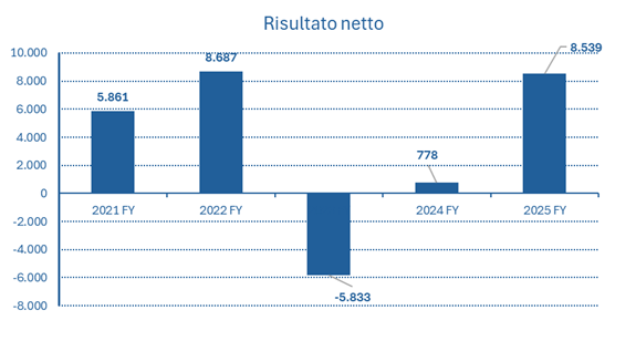 | Risultato netto | 8.539 | 778 | -5.833 | 8.687 | 5.861 |