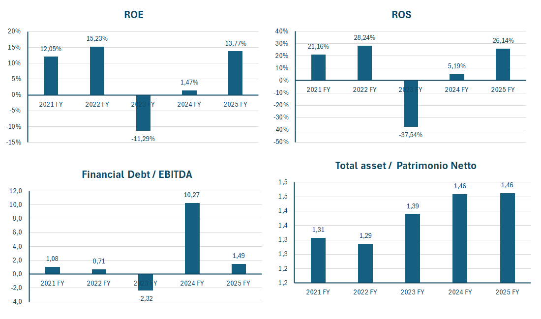 | Total asset / Patrimonio Netto | 1,46 | 1,46 | 1,39 | 1,29 | 1,31 |