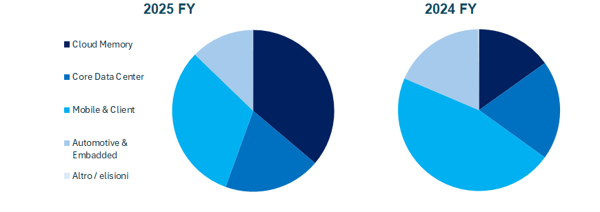 - Cloud Memory Business Unit: focalizzata su soluzioni di memoria per grandi clienti cloud hyperscale e HBM per tutti i clienti dei data center;