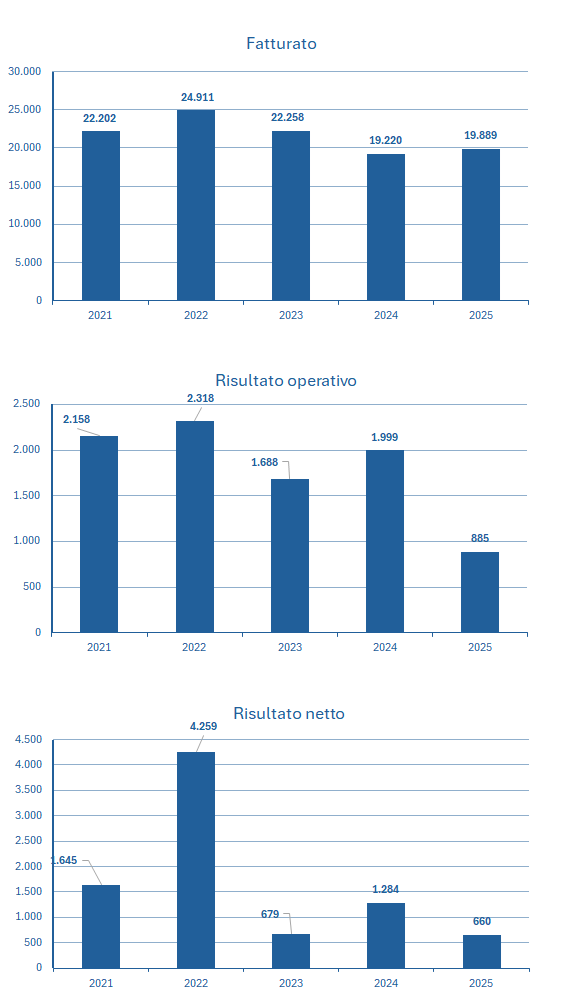 | Fatturato | 22.202 | 24.911 | 22.258 | 19.220 | 19.889 |