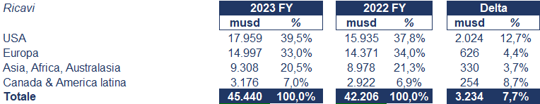 I medesimi, suddivisi per area geografica, sono indicati nel prospetto sottostante: