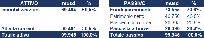 Alla data sopra indicata lo stato patrimoniale era il seguente: