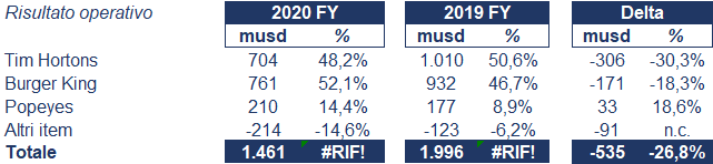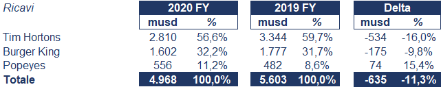 Restaurant Brands bilancio 2020: andamento del fatturato e della trimestrale