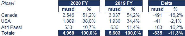 I medesimi, ripartiti per area geografica, sono riassunti nel prospetto seguente: