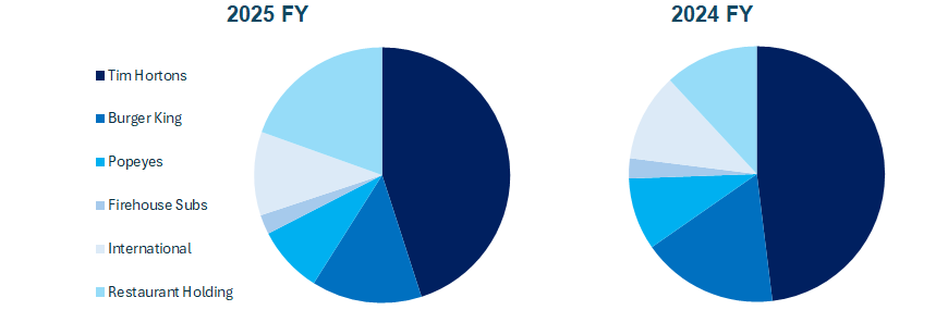 - Restaurant Holdings: sovraintende le operazioni dei ristoranti Burger King acquisiti nel 2024 e le operazioni dei Popeyes Cina e Firehouse Subs Brasile.