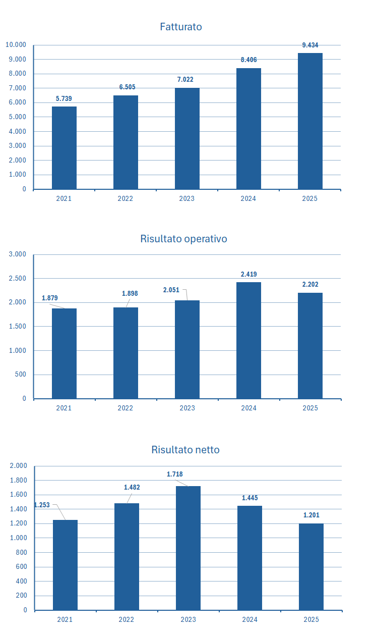 | Fatturato | 5.739 | 6.505 | 7.022 | 8.406 | 9.434 |