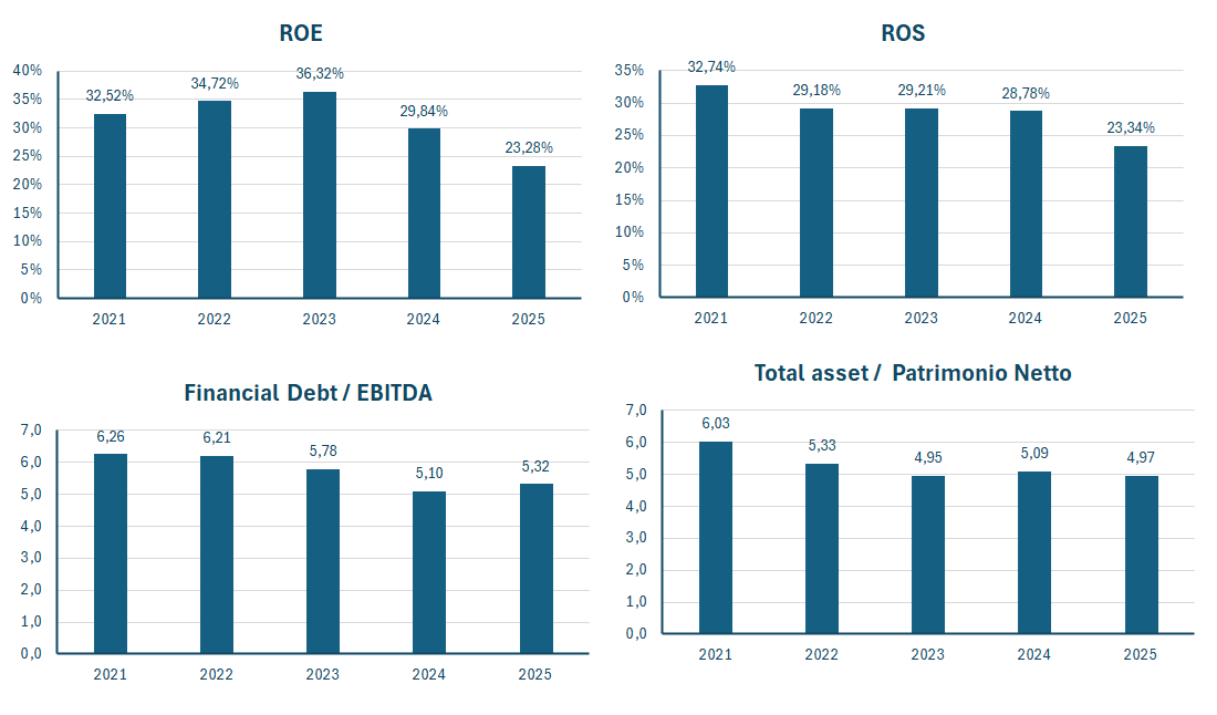 | ROS (Return on Sales) | 32,74% | 29,18% | 29,21% | 28,78% | 23,34% |