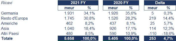 I medesimi ripartiti per area geografica sono esposti nel prospetto seguente: