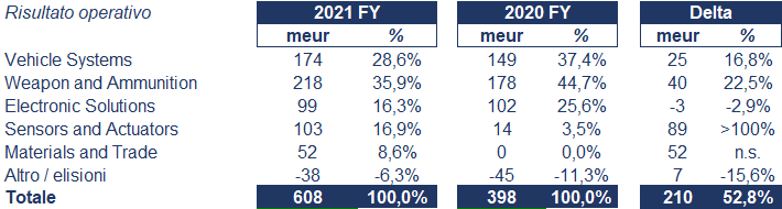 Più in dettaglio, la dinamica del risultato operativo è esposta nella tabella sottostate: