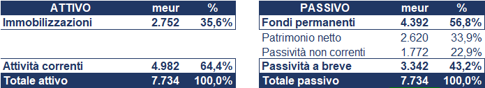 Alla data sopra indicata lo stato patrimoniale era il seguente: