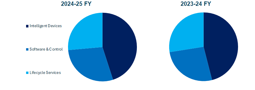 | Intelligent Devices | 3.756 | 45,0% | 3.804,1 | 46,0% | -48 | -1,3% | ||